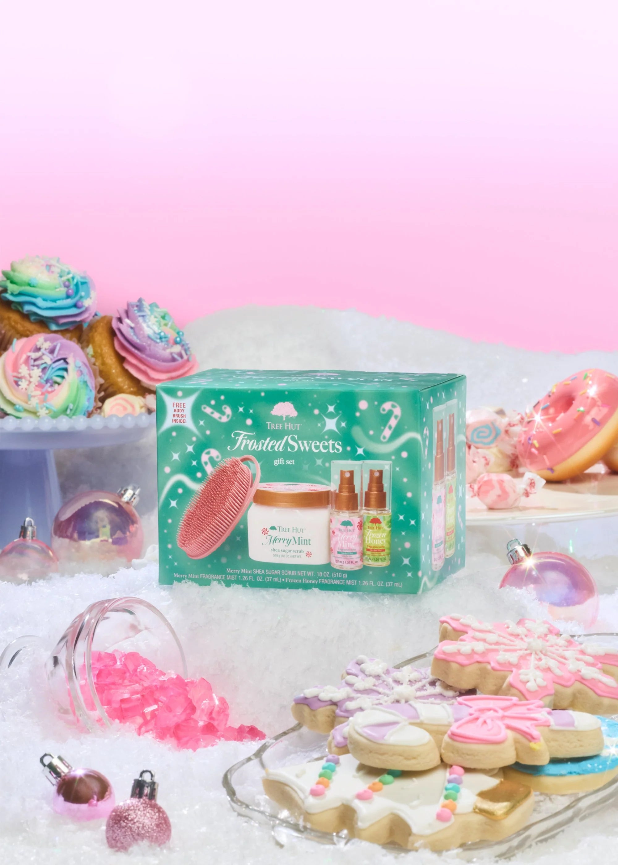 The Frosted Sweets Gift Set is the ultimate blend of sweet, honey-dipped and peppermint-topped perfection! Packed with the travel-size sugary, icy Frosted Honey Fragrance Mist and the travel-size, delicious Merry Mint Fragrance Mist, this set brings sweet, holiday-inspired scents you'll want all season long. A full-size Merry Mint Scrub is included for the ultimate festive self-care experience you’ll want year-round.