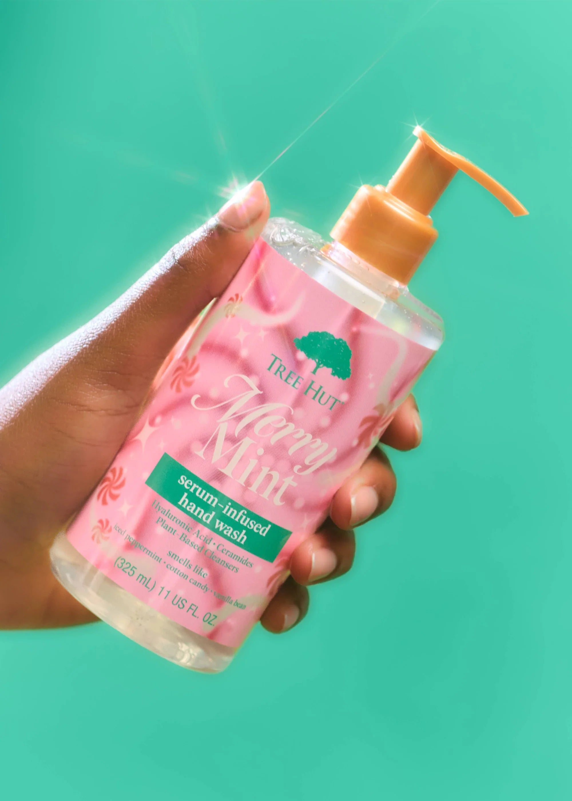 Bring the magic of the holidays to your sink with our festive hand wash—infused with a silky, serum-like texture for healthy, hydrated hands. This gentle formula is made with plant-based cleansers, Hyaluronic Acid, and Ceramides to nourish and moisturize your skin. Plus, it leaves behind the long-lasting, enchanting scent of Merry Mint!